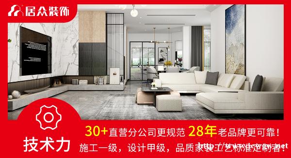 居众装饰专注于住宅,别墅设计,施工等领域,具有国家建设部颁发的设计甲级,施工1级的资质.以涵盖“全案设计,5A金钻施工体系,主辅材配套,软装配饰”于1体化的1站式服务为特色.为中国中高端人群装修提供完整解决方案.同时采用多品牌运作模式,旗下子品牌包含:居众装饰,居众整装,居众欣装,整体家居体验馆、软装体验馆,居众商学院等.全国已覆盖15城,开设55家直营公司及10家体验店。